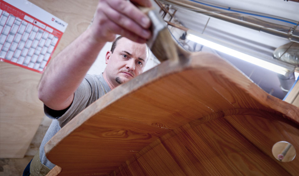 Защитное покрытие мы наносим только кисточкой. Так дольше, но гораздо качественней.